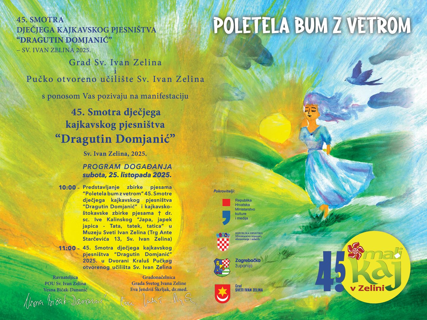 10:00 - Predstavljanje zbirke pjesama "Poletela bum z vetrom" 45. Smotre dječjega kajkavskog pjesništva "Dragutin Domjanić"  i kajkavsko-štokavske zbirke pjesama † dr. sc. Ive Kalinskog "Japa, japek japica - Tata, tatek, tatica"